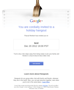 Unter familyhangouts.withgoogle.com kann man einen Hangout planen. Die Gäste bekommen dann eine Mail und können zum angegeben Daten dem Hangout beitreten.