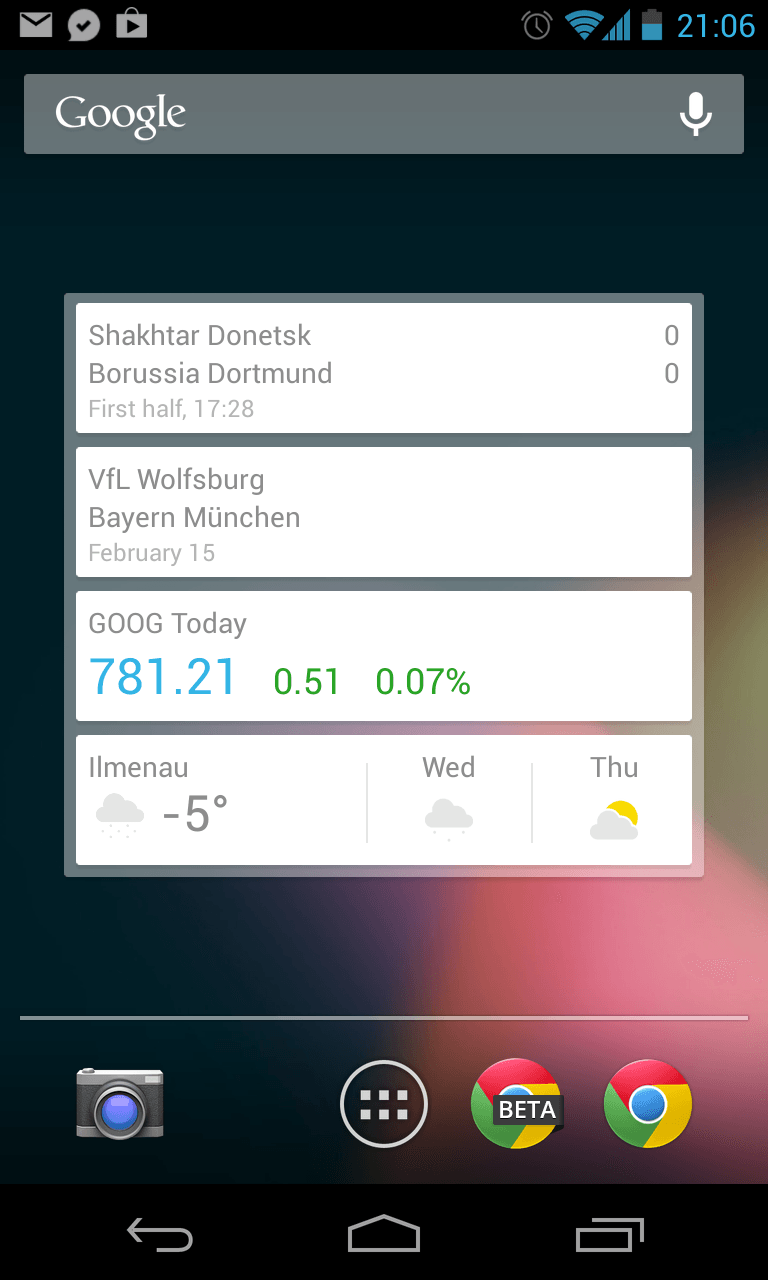 Das Widget zeigt automatisch die selben Karten an, wie man sie auch von Google Now kennt. Man braucht dafür aber nicht Google Now zu starten, sondern kann die Informationen recht einfach vom Home Screen ablesen.
