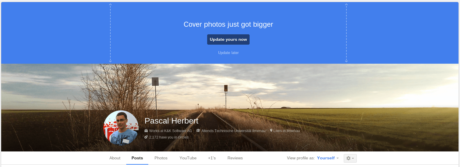 Google hat damit angefangen einen neuen Look für die Google+ Profile zu veröffentlichen. Getreu dem Motto größer, höher, weiter hat Google das Cover Foto aktualisiert. Aber auch die Über mich Seite an einen neuen Look bekommen.