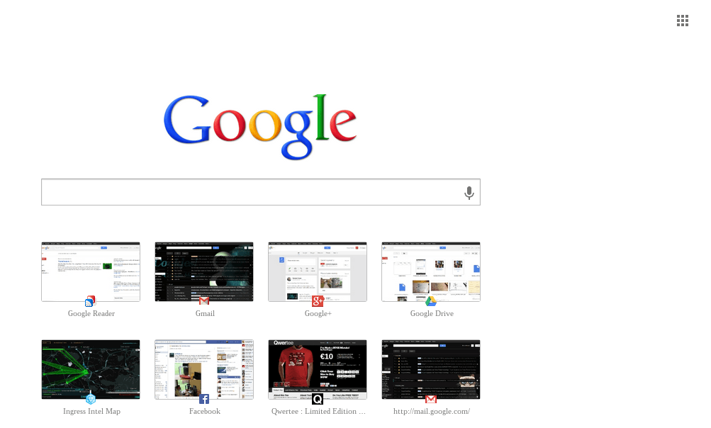 Auf Chrome OS 28, welches derzeit in der Dev-Version steht, kann ich das Menü auf der neugestalteten Version von „Neuer Tab“ sehen. Auch in der Suche selbst hatte ich diese 3 mal 3 Kästchen schon mehrfach.