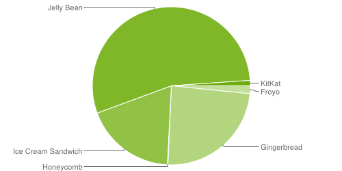 Jelly Bean (also 4.1, 4.2 und 4.3) haben zusammen einen Marktanteil von 54,5%.