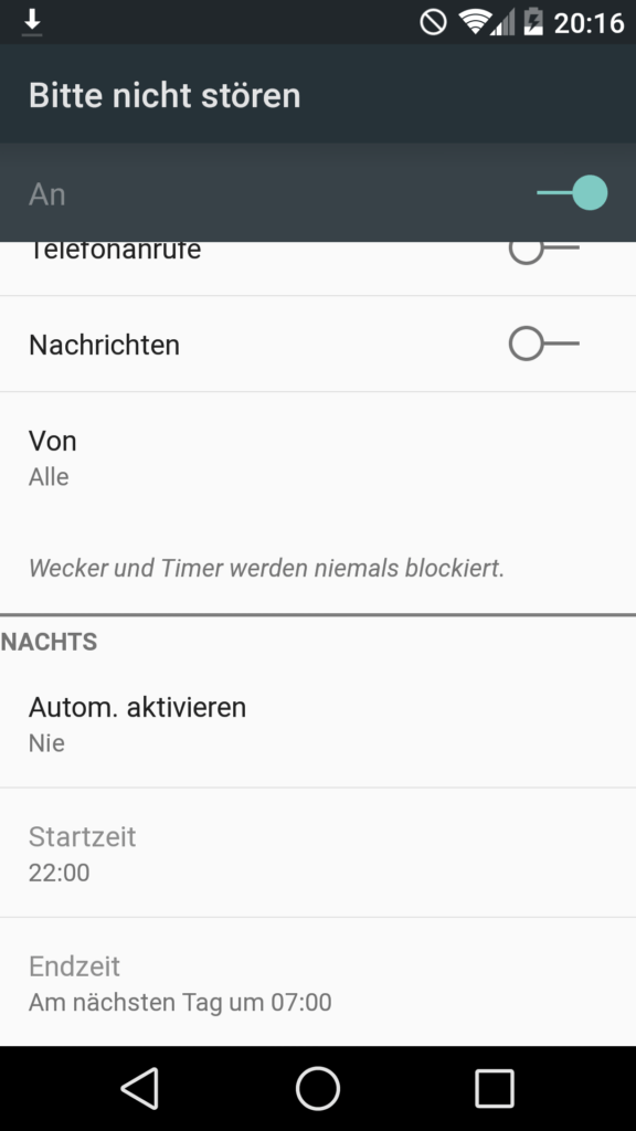 Ein neues Feature ist, dass man Benachrichtigungen stumm schalten kann und zwar etweder für ein paar Stunden oder dauerhaft. Weiter findet man in den Einstellungen die Möglichkeit die Benachrichtungen automatisch zum Beispiel von 22 Uhr bis 7 Uhr stumm zu schalten. Da man aber möglicherweise geweckt werden will, kann man Apps von der Stummschaltung ausnehmen.