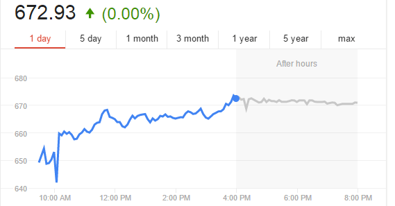 Am Ende des Börsentages schloss die Aktie bei einem Wert von 699,62 und fällt seitdem wieder stetig ab und liegt aktuell bei etwa 672 Dollar – allerdings immer noch ein Wert der sehr weit über dem Kurs vor der Verkündung der Quartalszahlen liegt. Zum Börsenschluss hatte Google eine Marktkapitalisierung von 470 Milliarden Dollar und ist damit auf Rang zwei der wertvollsten Unternehmen der Welt geschossen. Nur Dauerkonkurrent Apple ist aktuell noch mehr Wert und kommt auf eine Marktwert von 740 Milliarden Dollar – bis hier hin ist es also noch ein weiter Weg.