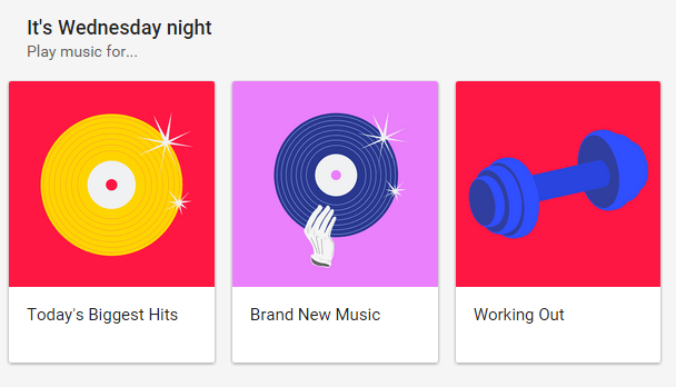 Wer Abonnent von Google Play Music ist, kann sich je nach Tages- und Aktivitätssituation von neuer Musik inspirieren lassen: Ob „Zeit für Sport“, „Heißer Tag im Büro“ oder „Putzen und Aufräumen“. Hier soll für jeden Musikgeschmack was dabei sein.Die Listen sind innerhalb der App sowie im Web unter „Jetzt anhören“ integriert und als „Aktivitäten-Kacheln“ dargestellt.