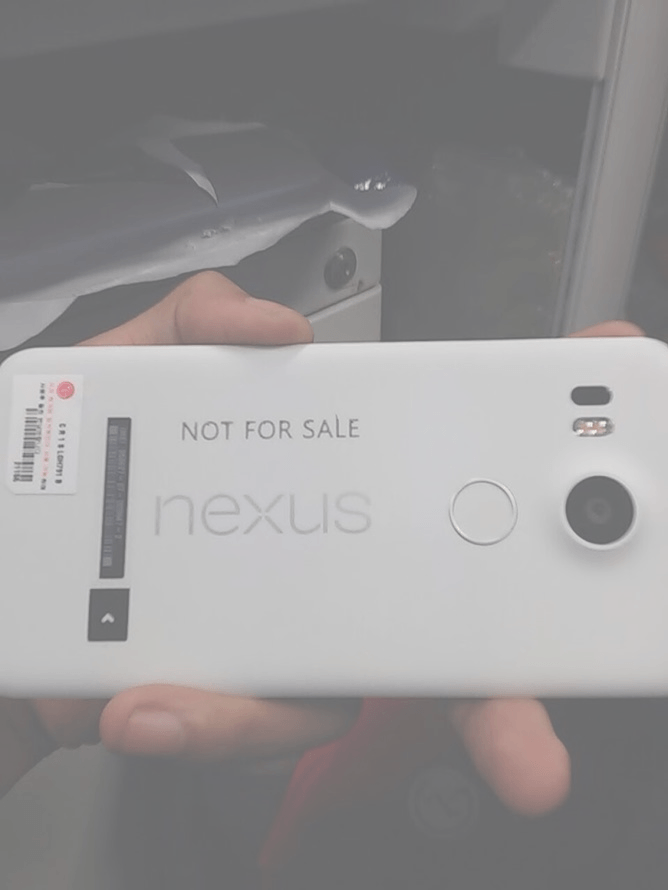 Auf dem Foto dürfte das offizielle Nexus 5 zu sehen sein, das an die ersten Händler zur Einschulung ihres Personals ausgeliefert wurde. Darauf weist das groß angebrachte Label „NOT FOR SALE“ hin – es kann sich dabei also auch schon um ein Vorführgerät für den Kunden handeln. Das auf der linken unteren Seite angebrachte Etikett bestätigt dann auch wieder einmal LG als Hersteller, denn das lächelnde Gesicht ist hier groß aufgedruckt und auch in dem schwer zu erkennenden Text enthält die Buchstabenfolge LG.