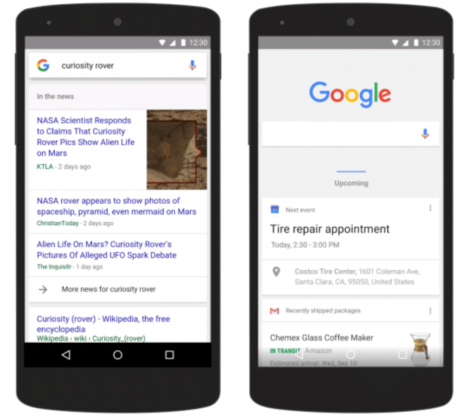 Das Logo ist mittlerweile auch auf den Smartphones der meisten Nutzer angekommen und auch die einzelnen Design-Elemente finden mittlerweile in der Websuche und in Google Now Verwendung. Wie man sieht, haben es die Designer tatsächlich geschafft, die vier Standard-Farben noch deutlich prominenter zu platzieren und sich mit diesen zu identifizieren. Und obwohl man die Farben seit Urzeiten verwendet, kommen sie erst jetzt richtig in den Vordergrund.