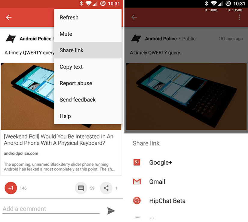 Google+ Android-App: Neue Share-Funktion ermöglicht natives Teilen von Beiträgen mit externen Apps