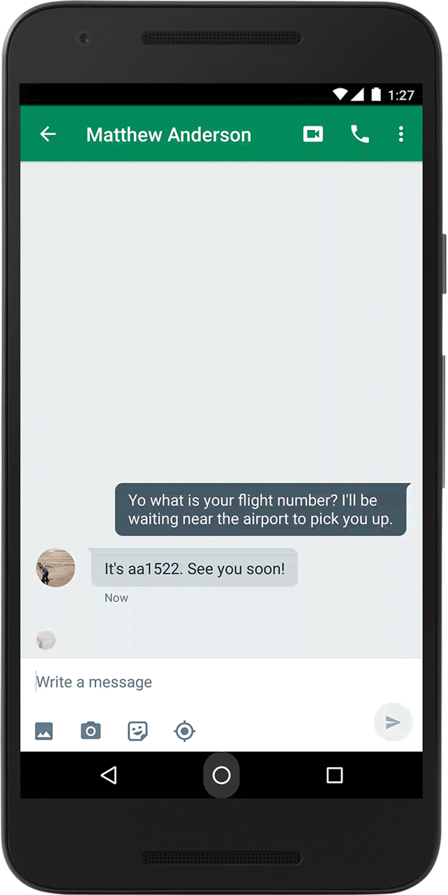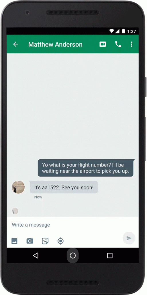 Mit dem letzten Update von Now on Tap kann das Tool nun auch Informationen zu Flügen anzeigen, ganz so wie es die Websuche ebenfalls tun kann. Wenn etwa eine Flugnummer in einem Chat oder einer SMS erwähnt wird, reicht nun ein einziger Touch auf den Home-Button und schon erscheinen die bekannten Informationen zu dem Flug: Wohin geht es, woher kommt der Flug und wann wird er voraussichtlich fliegen bzw. liegt er noch im Plan. Außerdem kann das Tool nun auch Informationen zu Paketnummern von vielen großen Transport-Dienstleistern anzeigen und diese direkt aus dem Display ablesen.