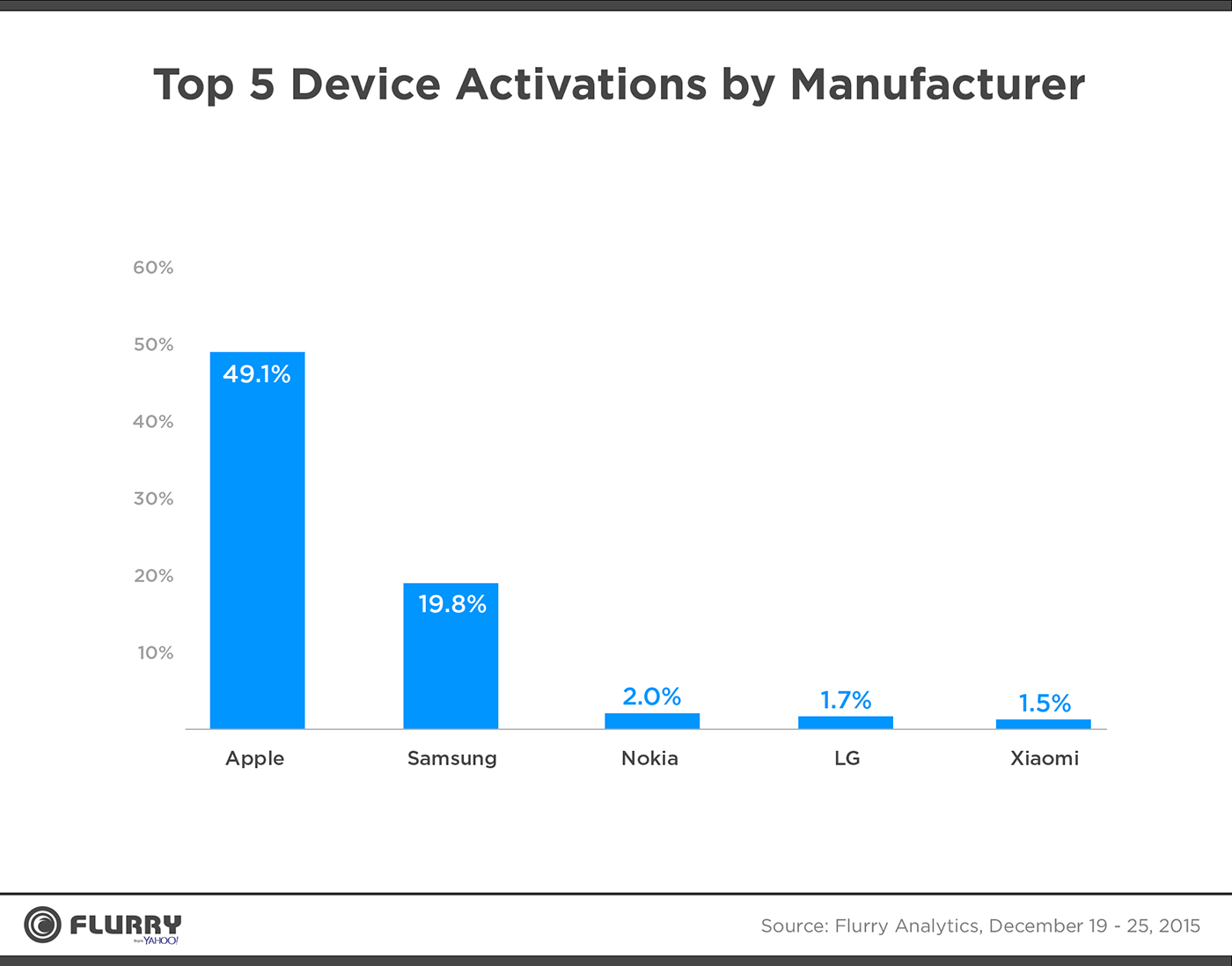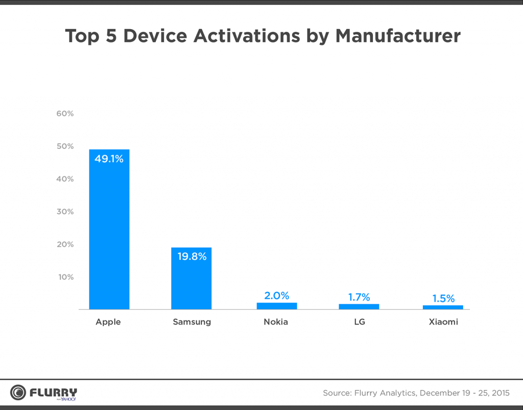 Wie in jedem Jahr lagen auch dieses Weihnachten wieder jede Menge Smartphones und Tablets unter dem Weihnachtsbaum und haben die Marktanteile für die kommenden Monate wieder gehörig durcheinander gewirbelt: Laut einer neuen Statistik von Flurry stammte jedes zweite in der Weihnachtszeit aktivierte Gerät aus dem Hause Apple – zumindest in diesen Tagen muss Android also noch immer seine Dominanz einbüßen. Als weiteres interessantes Ergebnis kam auch heraus, dass der Großteil der aktivierten Android-Geräte Phablets gewesen sind.