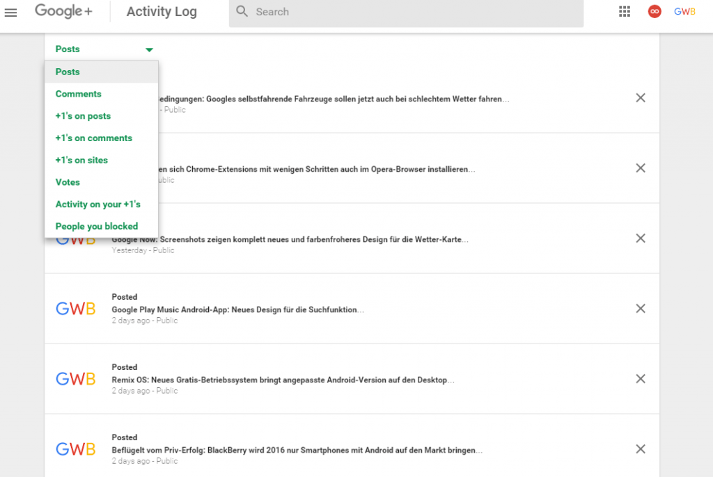 Neue Übersicht: Google+ Aktivitätsprotokoll zeigt alle eigenen Beiträge, Kommentare und geplusste Inhalte an