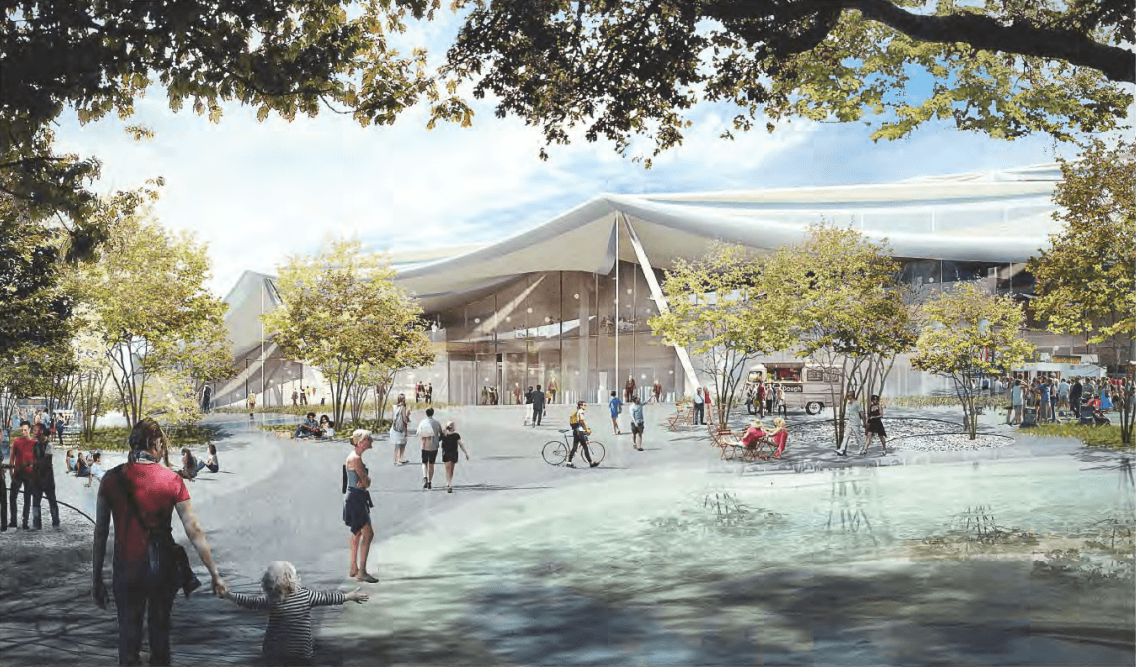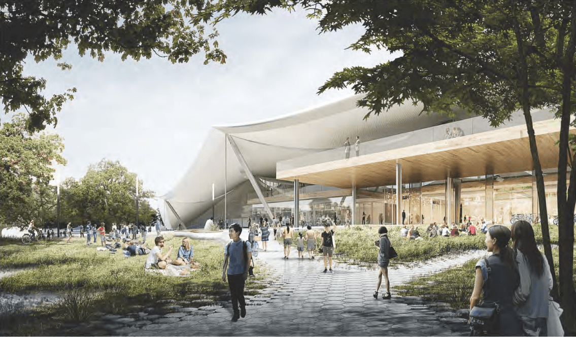Wie auf den Bildern sehr gut zu sehen ist, erinnert der gesamte Komplex eher an ein riesiges Zirkuszelt, und wird in keinem Fall in die Höhe gebaut. Das Gebäude wird eine Grundfläche von 55.000 m² haben, inklusive einer „öffentlichen Route“ von 1.700 m² durch das Gebäude – wobei nicht ganz klar ist was das bedeutet. In der Anlage sollen 1.200 Parkplätze und 660 Fahrradständer zur Verfügung stehen. Wann und ob das Gebäude gebaut wird, ist aber noch immer nicht bekannt.