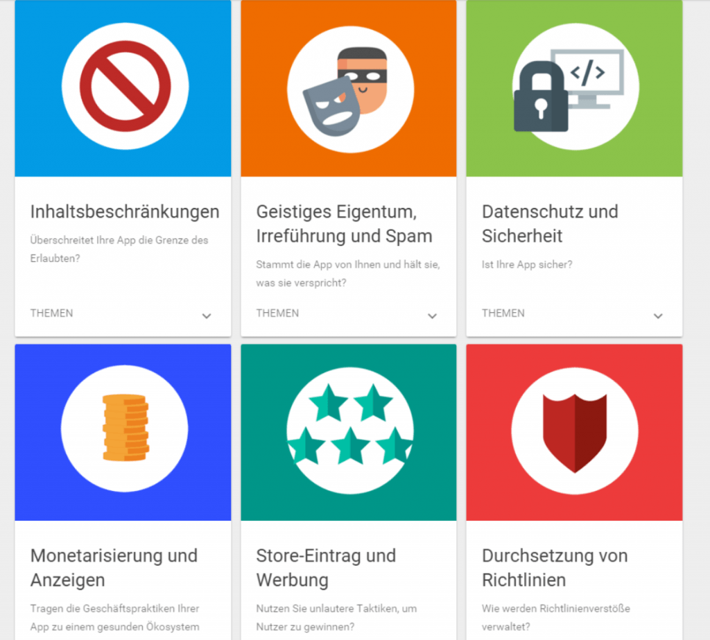 Im Zuge des Updates der Richtlinien hat Google auch eine völlig neu gestaltete Webseite für die Richtlinien ins Netz gestellt, die die einzelnen Richtlinien nun einfacher aufbereitet und das ganze (eher trockene) Thema farbenfroh und mit Grafiken aufbereitet.