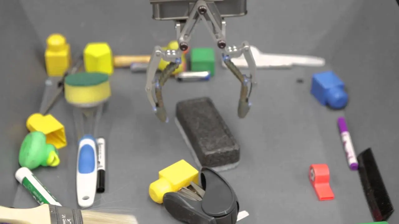 Die Hand besteht lediglich aus einem einfachen Greifer und hat praktisch nur zwei Finger, was es natürlich sehr viel schwerer macht einen Gegenstand sicher vom Tisch aufzuheben. Trainiert wurde das System gleich durch 14 miteinander vernetzte Greifarme, die in insgesamt 800.000 Versuchen die Beschaffenheit der Objekte gelernt und Strategien zum aufheben entwickelt haben. In obigem Video sieht man, dass die Hand dabei sehr sicher ist und jedes Objekt wohl genau so hochhebt, wie es auch ein Mensch mit nur zwei Fingern tun würde.