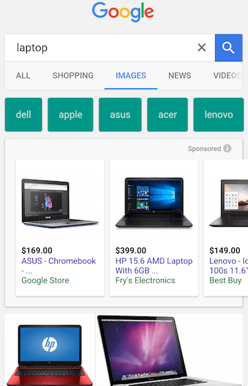 Product Listing Ads: Mobile Bildersuche zeigt jetzt auch Werbung über den Suchergebnissen