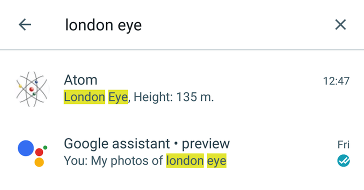 Zu der Suche in den Konversationen gehören auch die Fragen und Antworten des Google Assistant inklusive der gesendeten Auszüge, so dass man auch alle von ihm erhaltenen Informationen durchsuchen kann. Die Suchergebnisse werden erst einmal nacheinander aufgelistet und können anschließend durchforstet werden. Mit einem Klick auf das Ergebnis kommt man direkt in die Konversation und kann sich in dieser frei bewegen. Über ein Band am oberen Rand kann zum vorherigen oder nächsten Ergebnis gewechselt werden.