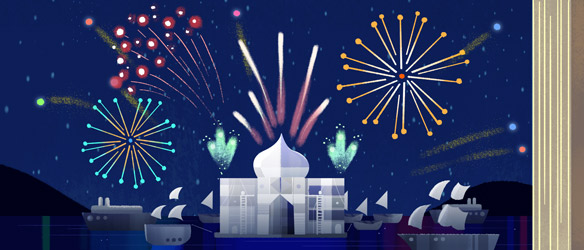 Das Doodle kann heute durchgescrollt werden und gibt daneben auch noch vier weitere Bilder frei. Diese erklären die Geschichte in einer extremen Kurzform, sind aber in dem Sinne kein Doodle mehr, da das Logo in den Bildern nicht mehr vorkommt.