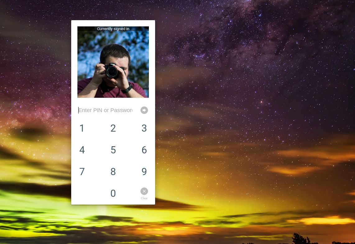 Statt den Nutzer nach jedem aufwachen aus dem Standby nach dem Passwort des Google-Accounts zu fragen, lässt sich in der aktuellen Version von Chrome OS nun auch ein vierstelliger PIN vergeben, der stattdessen zum Entsperren des Geräts verwendet werden kann. Das dafür vorgesehene Formular sieht wie üblich aus: Oben ist das Profilfoto des Nutzers und darunter befindet sich das Feld zur Eingabe. Die Zahlen können entweder per Touch (oder Klick) oder natürlich über die Tastatur eingegeben werden. Alternativ lässt sich in dieses Feld auch das Passwort eintragen.