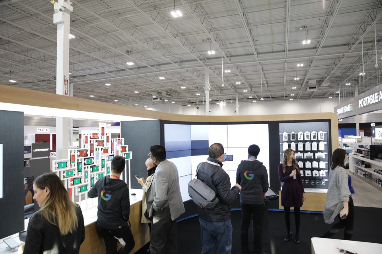 In einigen kanadischen Best Buy-Filialen hat Google nun größere Flächen eröffnet, in denen das Sortiment nach den eigenen Vorstellungen präsentiert wird und von den Kunden ausprobiert werden kann. Produkte wie die Pixel-Smartphones oder auch die VR-Brille Daydream liegen auf großen Tischen, die mit einer hellen und freundlichen Optik und starker Beleuchtung ein Blickfang im Elektronikmarkt sind.