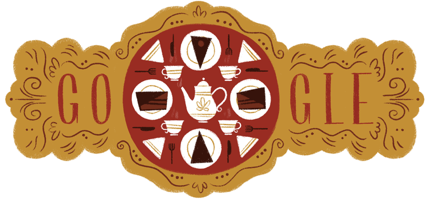 Das Doodle zeigt kein Porträt von Franz Sacher, sondern ist sehr klassisch gehalten und enthält seine berühmteste Erfindung: Das zweite O des Google-Logos hat sich in einen großen Kaffeetisch verwandelt, an dem vier Personen Platz genommen haben und ihre Sachertorte nach und nach verschlingen. In der Mitte darf natürlich auch die Kaffeekanne nicht fehlen, die ebenfalls mit einem klassischen Muster verziert ist.