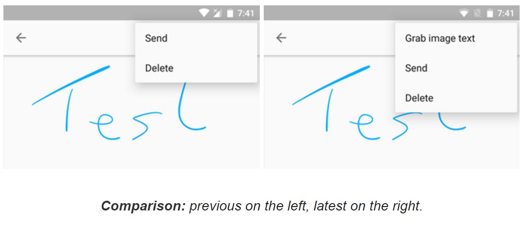 Schon seit längerer Zeit kann Google Keep Texte in Bildern erkennen und diese durch einen gut versteckten Menüpunkt extrahieren. Das funktioniert zwar nicht immer ganz so zuverlässig, kann aber natürlich sehr praktisch sein, wenn man nicht den ganzen Text selbst abtippen möchte. Nach dem Update gibt es diese Funktion nun auch direkt im Zeichenmodus, aber ebenfalls genau so gut versteckt und vergraben im Overflow-Menü.