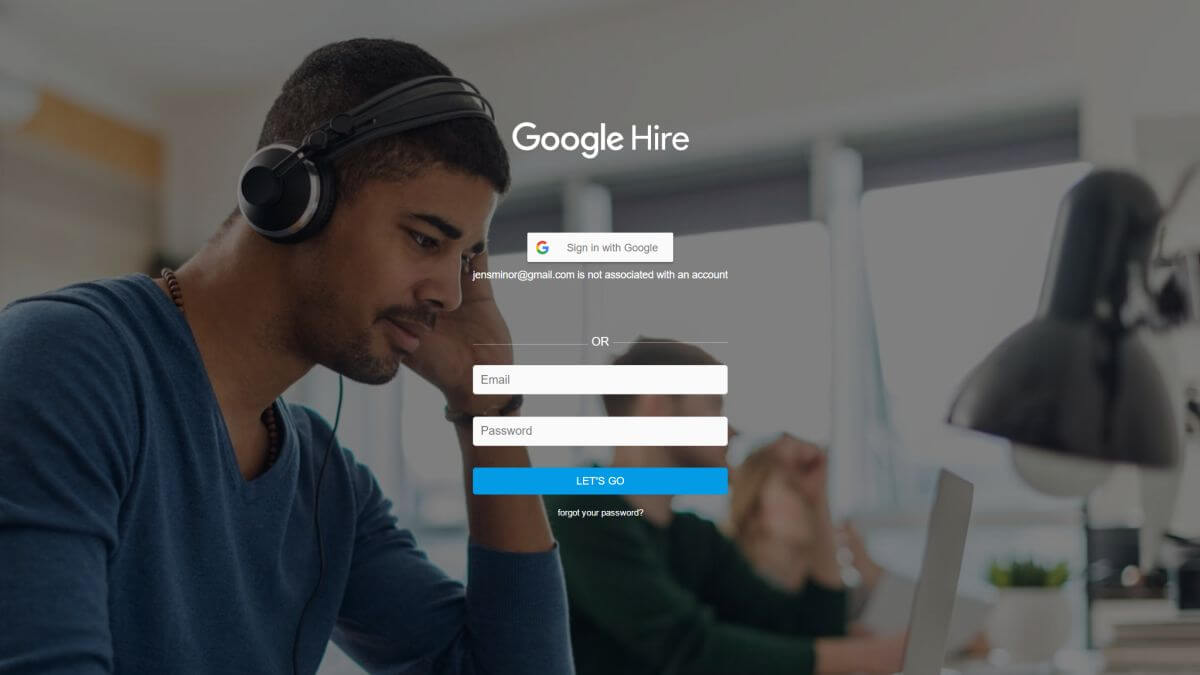 Das neue Angebot Google Hire kann schon jetzt aufgerufen werden, verrät aber leider nicht viel über die Funktionsweise. Auf der Startseite findet sich nur ein Login-Formular sowie die Möglichkeit, sich mit dem Google-Account einzuloggen. Da beide Möglichkeiten voneinander getrennt sind, kann man davon ausgehen dass Unternehmen hier entsprechende Accounts und Zugangsdaten anlegen können, um neuen Mitarbeitern den Onboarding-Prozess zu erleichtern.