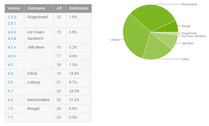 Android-Verteilung im Mai: Nougat legt deutlich zu, Jelly Bean verliert die meisten Anteile