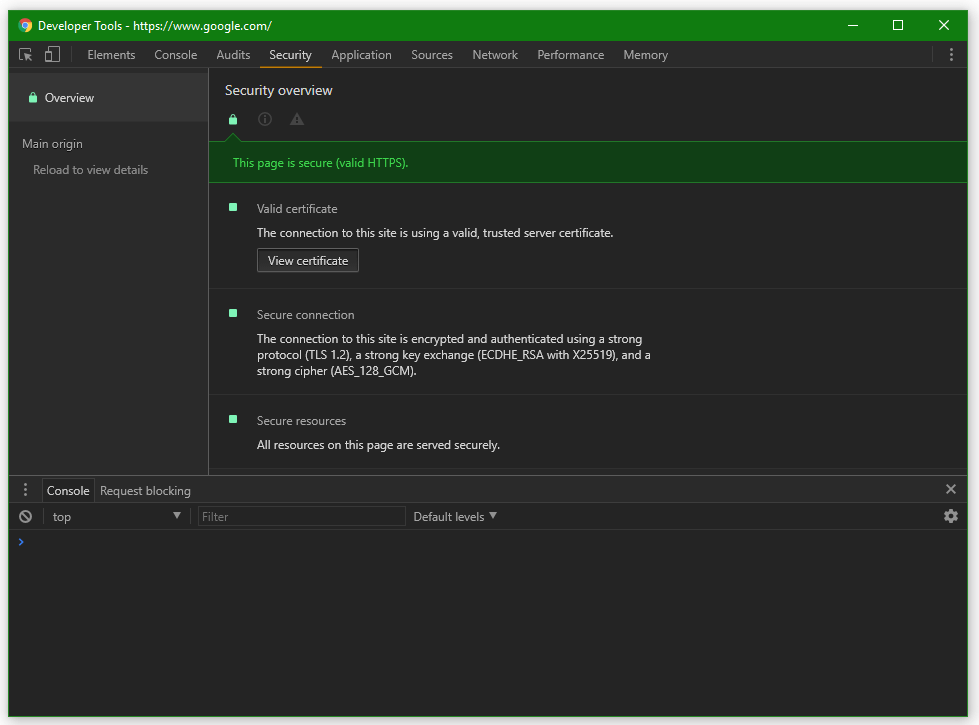 Bis zu den Änderungen vor ein paar Monaten gab es die Infos aus den DevTools zur Verschlüsselung und zum Schlüsselaustausch direkt in der Infobox. Jetzt stehen diese nur noch in den Dev-Tools zur Verfügung.