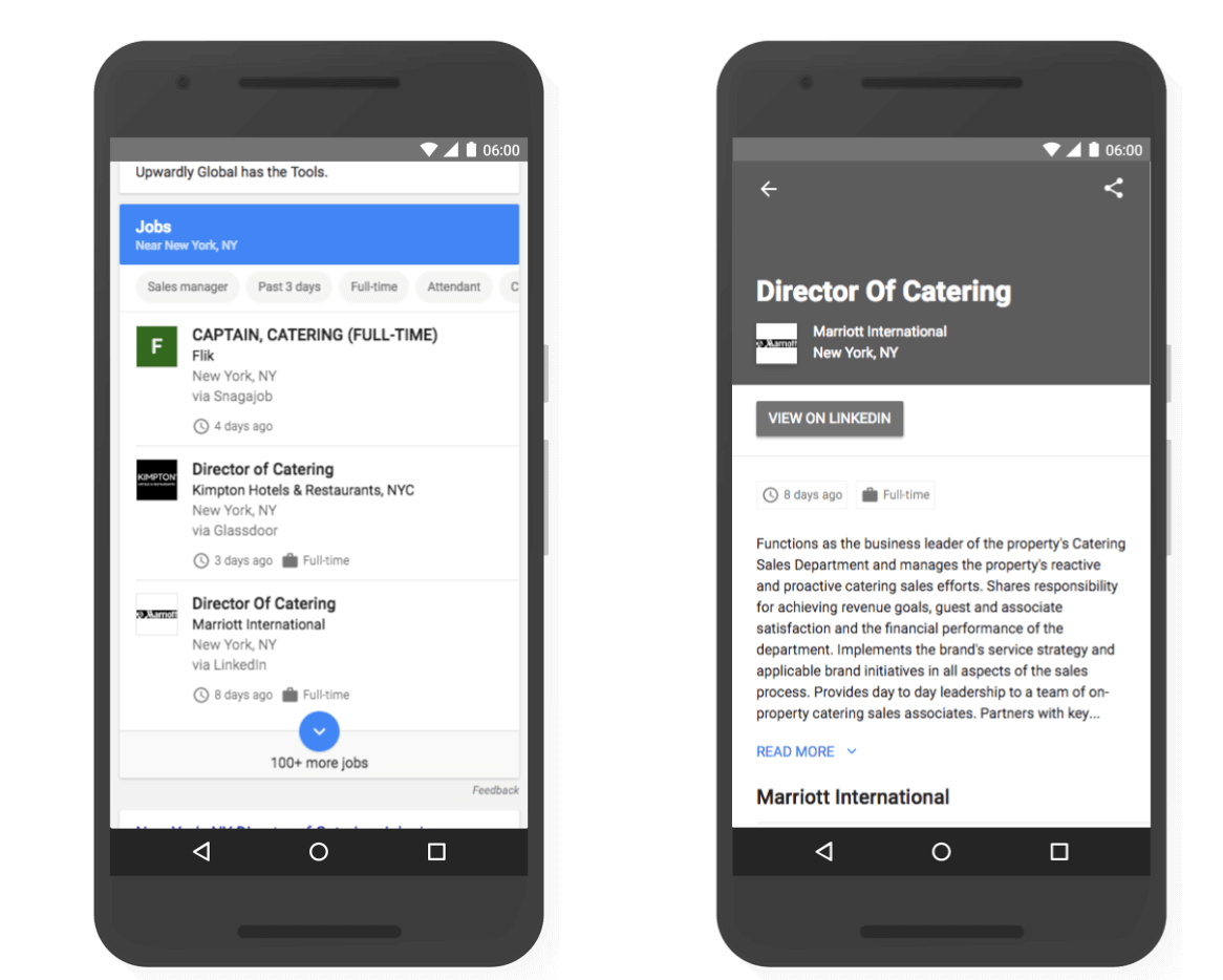 Es gibt viele große bekannte Job-Portale in denen man nach dem passenden Arbeitgeber und offenen Stellen suchen kann, aber offenbar bemühen auch immer noch viele Menschen Googles Websuche für solche Zwecke. Aus diesem Grund haben die Entwickler nun ein neues Portal direkt in die Websuche integriert, mit dem sich die Ergebnisse aus den diversen Job-Suchmaschinen sehr leicht auslesen und sortieren lassen. Die großen Portale wie Monster, LinkedIn, Glassdoor oder auch Facebook sind schon mit dabei und wurden automatisch von den Algorithmen integriert.