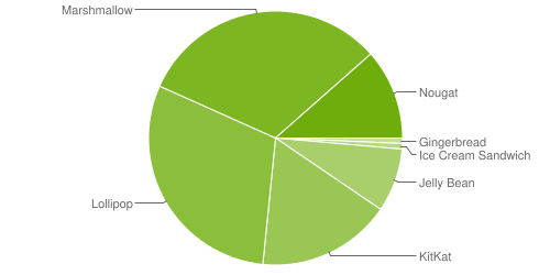 31,8% verwendet Marshmallow und damit Android 6.0. Android 7.0 findet man auf 10,6% der Geräte, Android 7.1 auf 0,9%.