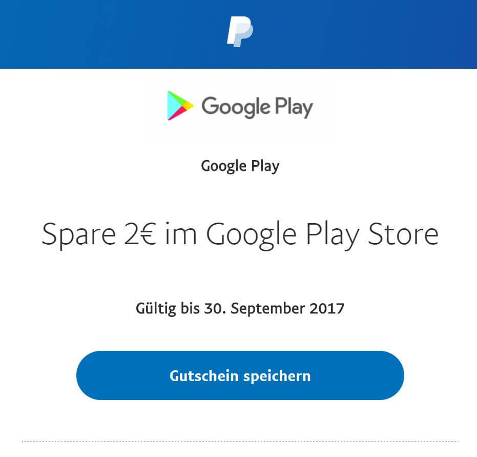 » PayPal: Der 2 Euro-Gutschein für den Play Store