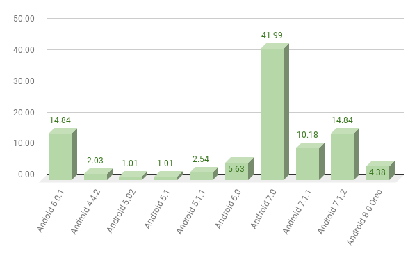 4. Android 7.1.1 Nougat 10,18 % (+1,3)