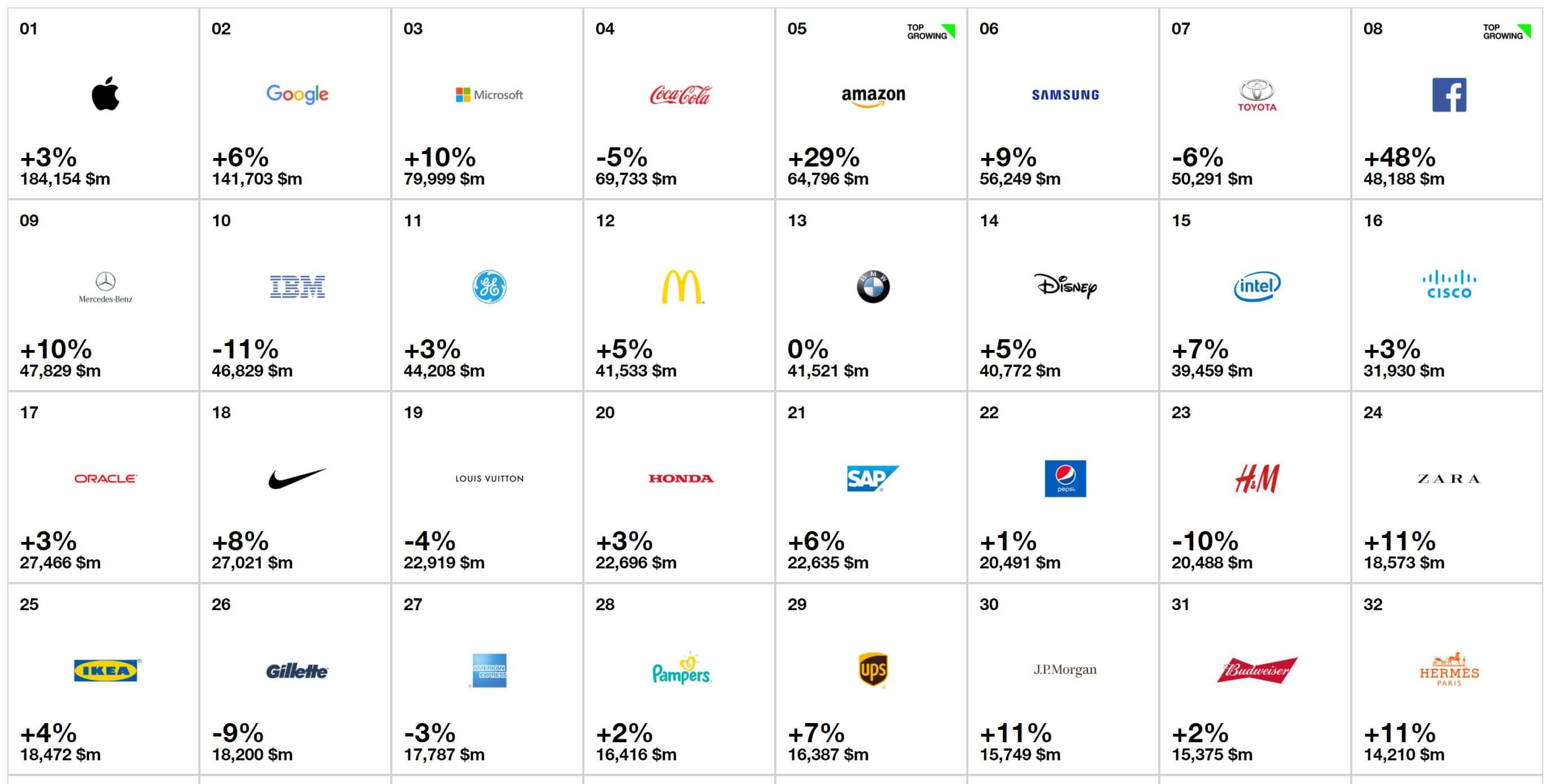 Unternehmen lassen sich nur über den Börsenwert miteinander vergleichen, auch wenn der in den meisten Fällen Hand und Fuß hat, sondern natürlich auch über die Kraft ihrer Marke – die beim Endkunden wichtiger ist als jede Firmenbewertung. Gerade große Unternehmen stellen ihre Marke gerne heraus und steigern so ihren eigenen Wert. Dabei geht es aber nicht nur um die Sympathie, sondern vor allem auch um die Sichtbarkeit der eigenen Marke, und in diesem Bereich sind die Technologie-Unternehmen einen großen Schritt voraus.