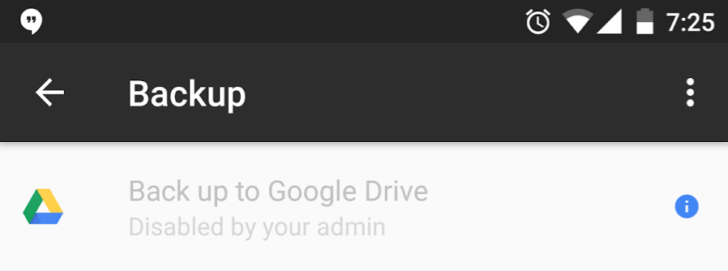 Da das Backup vollständig im Hintergrund verläuft und keine Interaktion des Nutzers erfordert, schauen wohl nur die wenigsten Nutzer in die Backup-Einstellungen herein und verlassen sich einfach auf das Motto „it just works“. Doch derzeit ist das vermutlich nicht so. Unzählige Nutzer, mich eingeschlossen, sehen derzeit in den Backup-Einstellungen nur den Hinweis, dass die Backups durch den Administrator deaktiviert wurden und somit nicht möglich sind. Zu sehen ist diese Meldung direkt in den Einstellungen->Backups und dann dem Aufruf des Google Accounts.