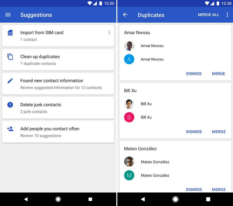 Jetzt hat Google noch zwei weitere Verbesserungen angekündigt, die bisher niemandem aufgefallen sind. So gibt es in den Kontakt-Vorschlägen nun den neuen Eintrag, dass Kontakte aus anderen Google-Produkten wie etwa GMail importiert werden können. Betitel wird dies als Import von Kontakten, die man häufig kontaktiert. Außerdem lassen sich nun alle zum Zusammenfügen vorgeschlagenen Kontakte in einem Rutsch bearbeiten, ohne alle Vorschläge einzeln bearbeiten zu müssen. So häufig dürfte man dies wohl nicht nutzen, aber es spart dennoch Zeit.