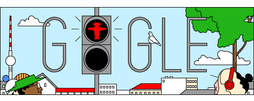 Das animierte Doodle zeigt eine heute Szene, wie sie millionenfach auf (deutschen) Straßen vorkommt: Die Fußgängerampel zeigt Rot an, und es sammeln sich Menschen auf beide Straßenseiten. Anschließend schaltet sie auf Grün um, und die Menschen ziehen weiter ihres Weges, und grüßen sich teilweise dabei. Heute werden gleich zwei O durch die Ampel ersetzt, und auf das zweite G hat sich auch noch eine Taube niedergelassen. Im Hintergrund ist eine Stadt zu sehen, die ich aufgrund des Fernsehturms auf der linken Seite Berlin zuordnen würde.