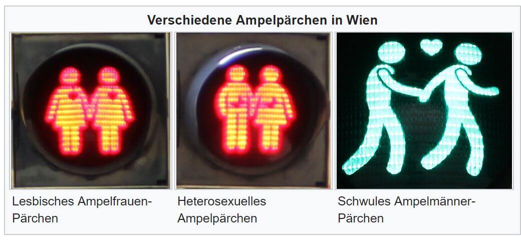 Mittlerweile unterliegen (natürlich) auch die Ampelmännchen dem Gender-Wahnsinn, und so gibt es in einigen Städten mittlerweile auch Ampelfrauen oder sie werden gar paarweise angezeigt – und dann natürlich auch in Paaren zu je zwei Frauen oder zwei Männern mit einem Herz dazwischen (kommt nur mal nach Wien!). Aber selbst solche Dinge, können der legendären Darstellung des im Doodle gezeigten Ampelmännchens nichts anhaben.