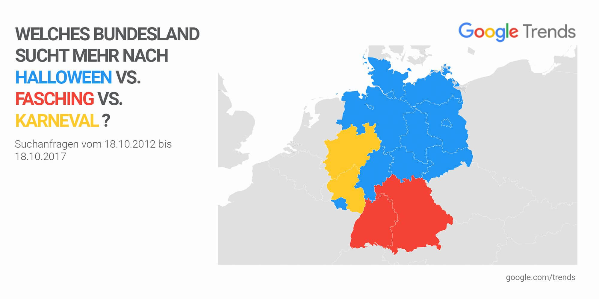 Welche Bundesländer suchen mehr nach Halloween vs. Fasching, Karneval und Fasnacht?