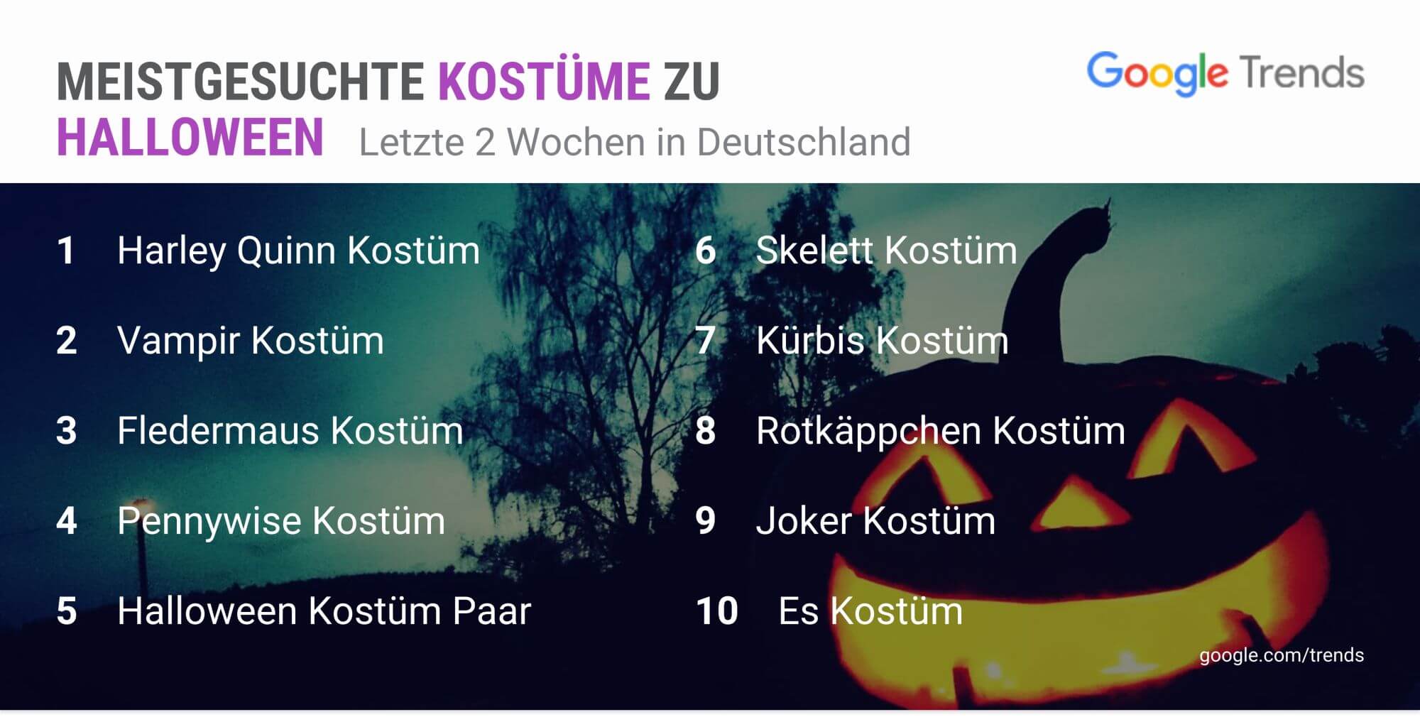 Google Websuche: Toplisten und beliebte Suchanfragen zu Halloween 2017