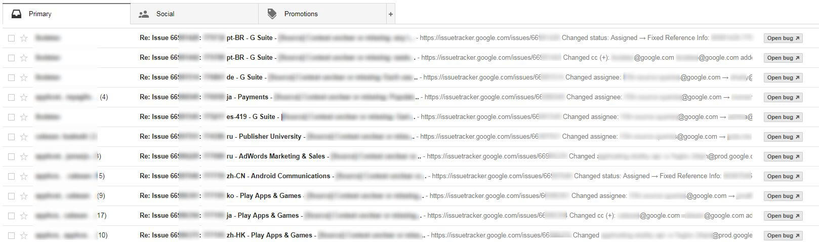 Beim zweiten Versuch es ihm gelungen, Issues mit einer beliebigen ID als Favorit zu markieren. Dazu musste er einfach nur die ID im Javascript austauschen, und schon hatte er das Problem abonniert. Das tat er dann per Script mit einigen Tausend zufälligen IDs und bekam anschließend im Minutentakt E-Mails mit weiteren Informationen von Google-Mitarbeitern, die das Unternehmen eigentlich niemals hätten verlassen sollen.