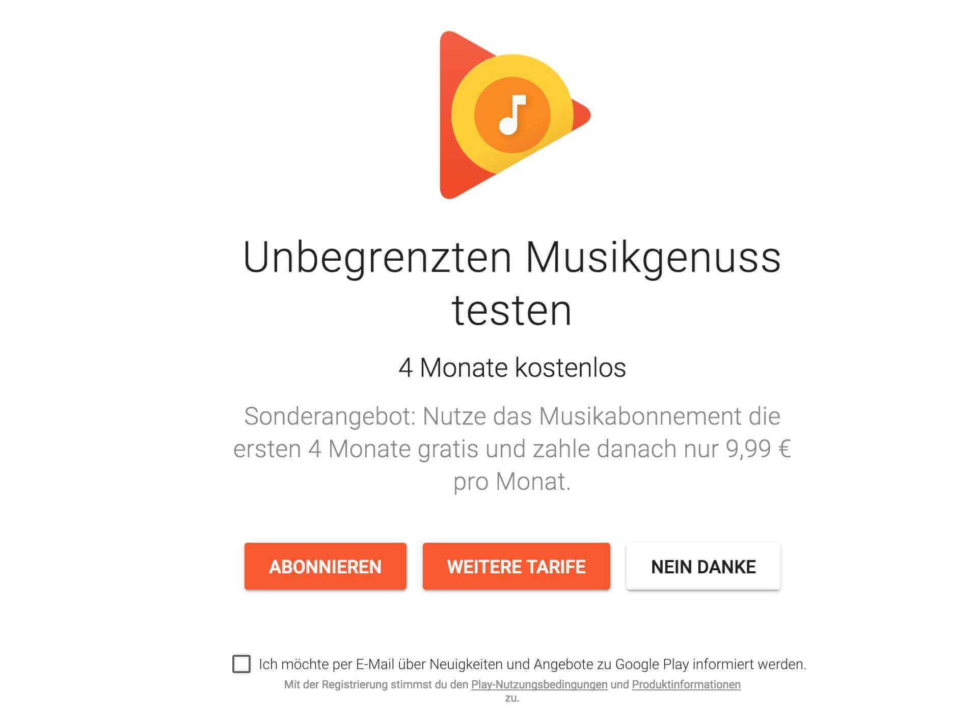 Vier Monate kostenlose Musik: Hol dir Google Play Music vier Monate Gratis und spare 39,96 Euro