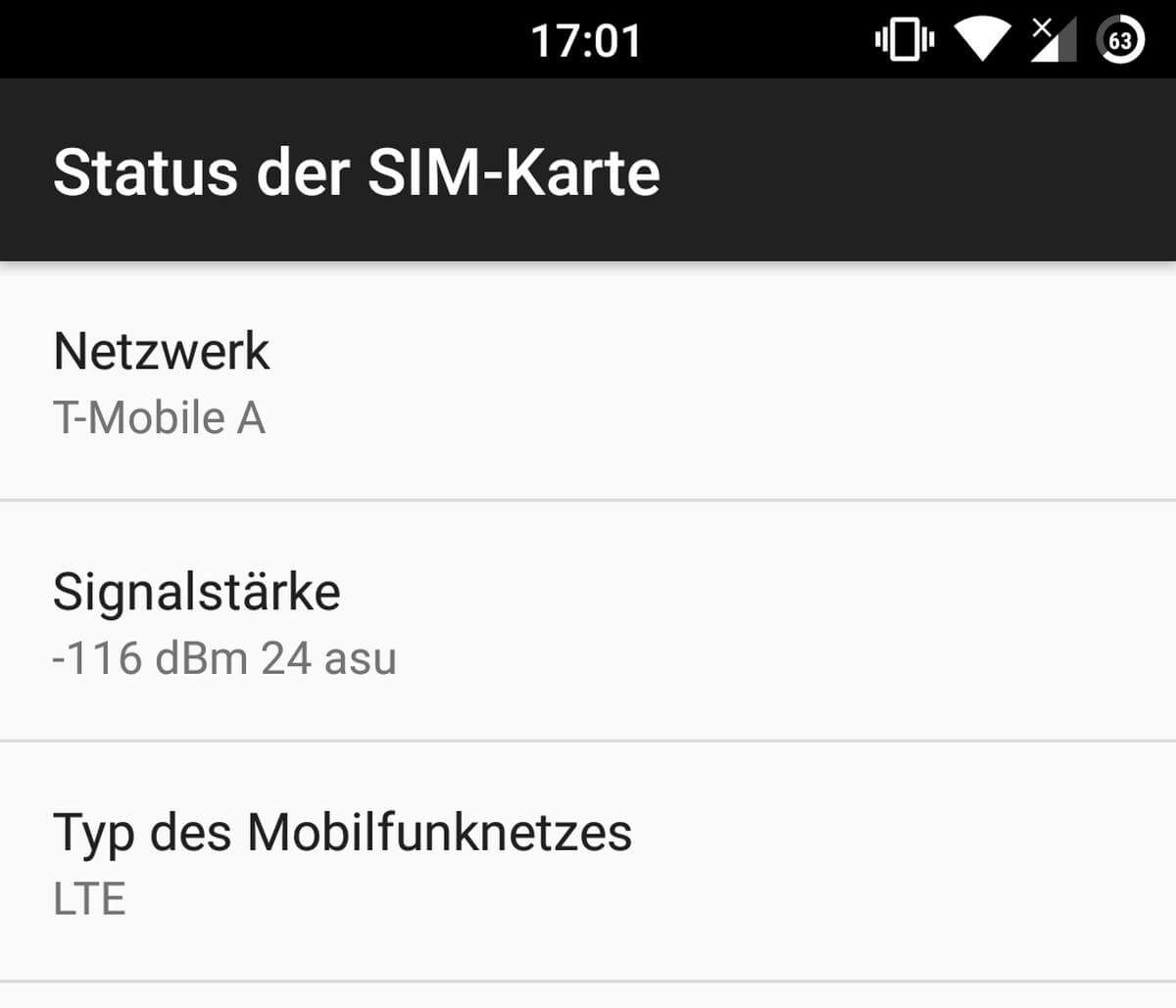 In den Einstellungen des Betriebssystems lässt sich im Status-Bereich sehr genau die Signalstärke der aktuellen Verbindung anzeigen. Dieser Wert wird sowohl in dBm (Dezibel Milliwatt) als auch in asu (Arbitrary Strength Unit) angezeigt und ist ständig aktuell. Wenn man mit diesen Werten etwas anfangen kann, ist es genauer als der kleine Balken in der Statusleiste des Telefons. Doch Mobilfunkanbieter sollen schon bald die Möglichkeit bekommen, diesen Wert auszublenden.
