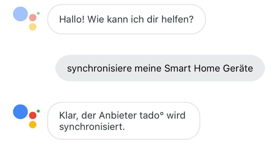 Werden neue smarte Geräte in das eigene Netzwerk aufgenommen, müssen diese einmalig mit dem Google Assistant verbunden werden um von diesem angesprochen werden zu können. Aber auch wenn sich durch einen merkwürdigen Zufall mal ein Gerät verabschiedet, muss es erneut verbunden werden. Dazu kann man nun einfach sagen „synchronisiere meine Smart Home Geräte“ und schon geht der Assistant bzw. der Home-Lautsprecher automatisch alle Geräte durch und verbindet diese erneut.