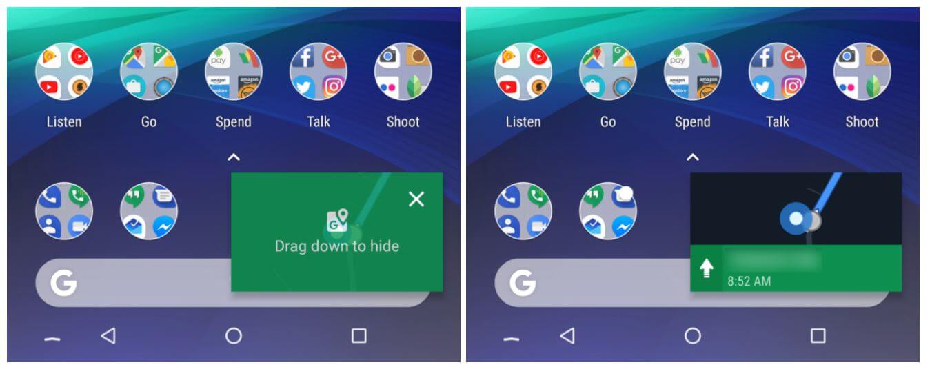 Der Bild-in-Bild Modus der Google Maps hat nun einen kleinen praktischen Tipp bekommen: Direkt nach dem Start erscheint ein kurzer Hinweis, dass das schwebende Widget einfach nach unten gezogen werden kann, um es zu schließen.