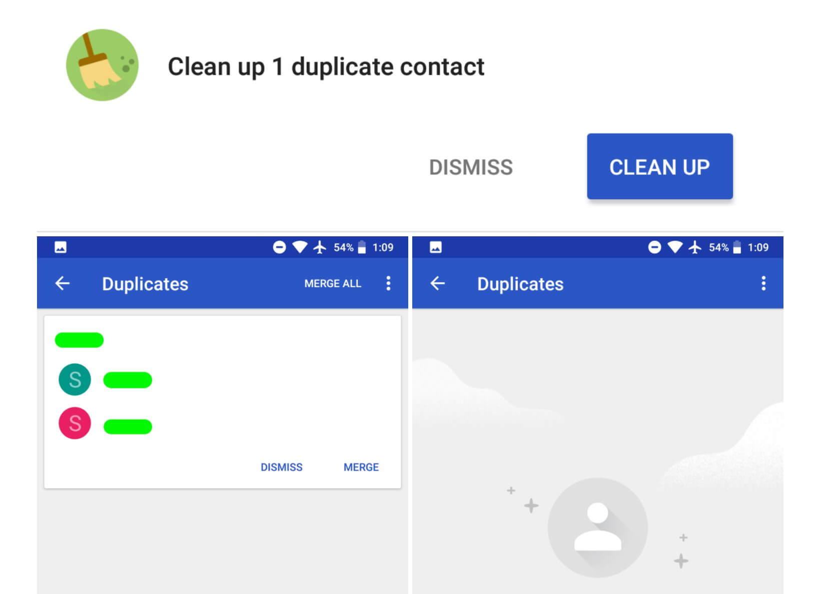 Als letztes kann nun auch die Telefon-App doppelte Kontakte erkennen und diese zuammenfügen. Wer bereits Google Contacts oder eine ähnliche App mit einer solchen Funktion verwendet wird das Feature nicht brauche und vielleicht auch nie zu Gesicht bekommen, aber dennoch ist das natürlich sehr praktisch. Diese Funktion wird übrigens nur automatisch gestartet und kann nicht aus einem Menü oder den Einstellungen aufgerufen werden. Es wird lediglich als kleine Snackbar beim Aufruf eines Kontakts angezeigt.