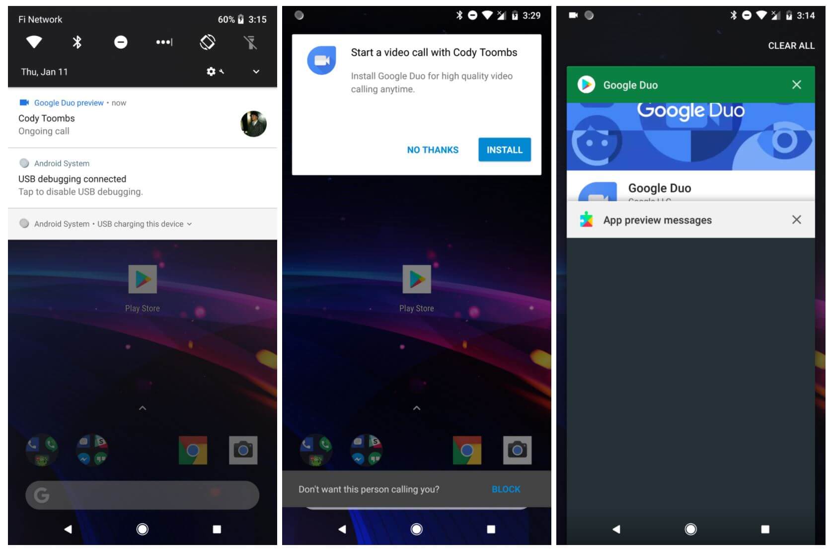 Ab sofort kann auch mit Kontakten ein Videotelefonat begonnen werden, die Google Duo gar nicht installiert werden. Tatsächlich steht selbst für die angerufenen Nutzer ohne Duo der vollständige Funktionsumfang zur Verfügung: Beide Seiten sehen sich gegenseitig, es gibt die Knock Knock-Vorschaufunktion und auch die Oberfläche sieht der Duo-Oberfläche sehr ähnlich. Ist das Videotelefonat dann beendet, bekommt der angerufene Nutzer noch eine Meldung, in der er zur Installation von Duo aufgefordert wird.