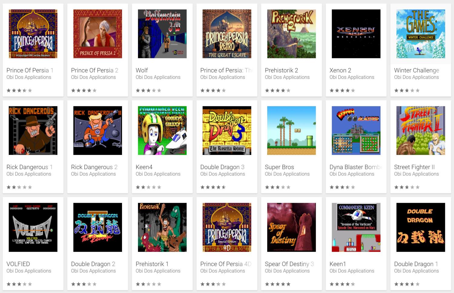 Der Entwickler Obi Dos Applications hat in den vergangenen Wochen unzählige Spieleklassiker in den Play Store gebracht. Von Titeln wie Prince of Persia, Commander Keen, Rick Dangerous über Winter Challenge bis hin zu Super Mario Bros. und Prehistorik ist alles dabei. Insgesamt stehen aktuell 34 Spiele zur Auswahl, die allesamt ihren Ursprung in der Zeit haben, in denen solche Spiele noch auf eine Diskette gepasst haben, die mit dem Norton Comander gestartet wurden und in denen man unter „grafische Benutzeroberfläche“ höchstens Windows 3.1 verstanden hat.