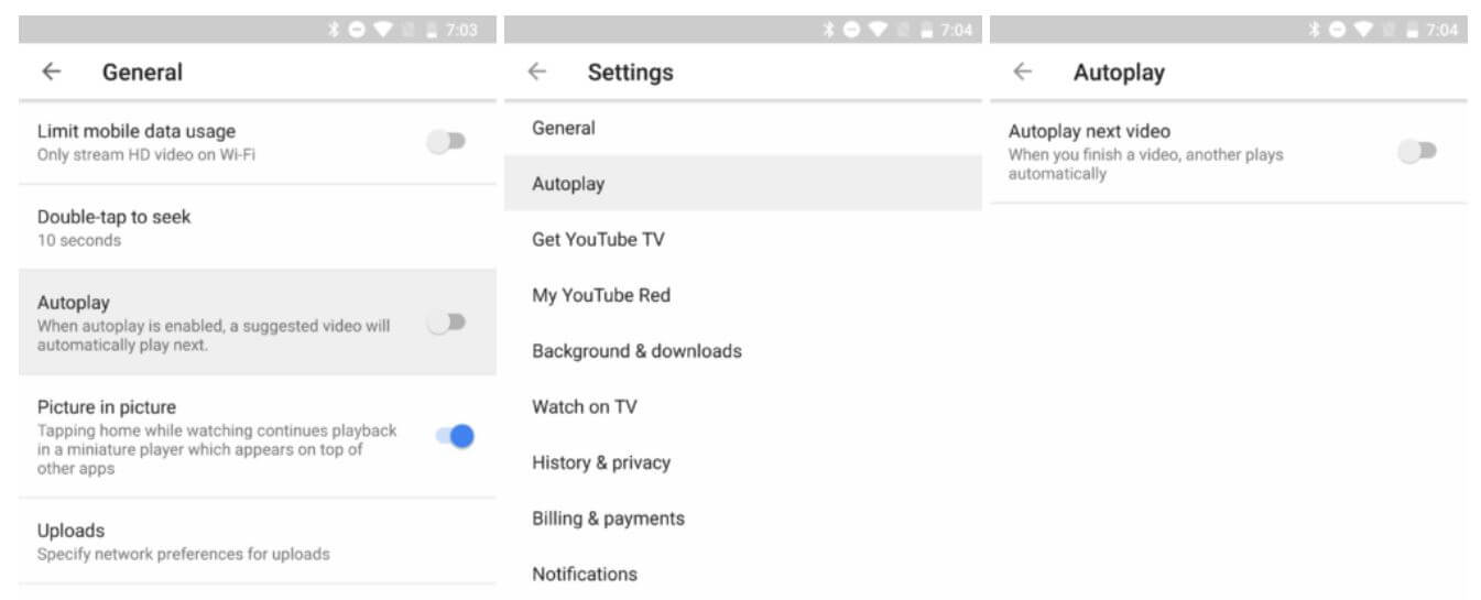 Die Einstellungen für den Autoplay, also das automatische Abspielen des nächsten Videos, sind nun aus den Allgemeinen Einstellungen herausgewandert und haben eine eigene Kategorie bekommen. Das wäre kaum erwähnenswert, aber da sich in dieser Kategorie jetzt nur ein einziger Eintrag befindet, kann man davon ausgehen dass hier in Zukunft noch mehr Funktionen dazu kommen werden.