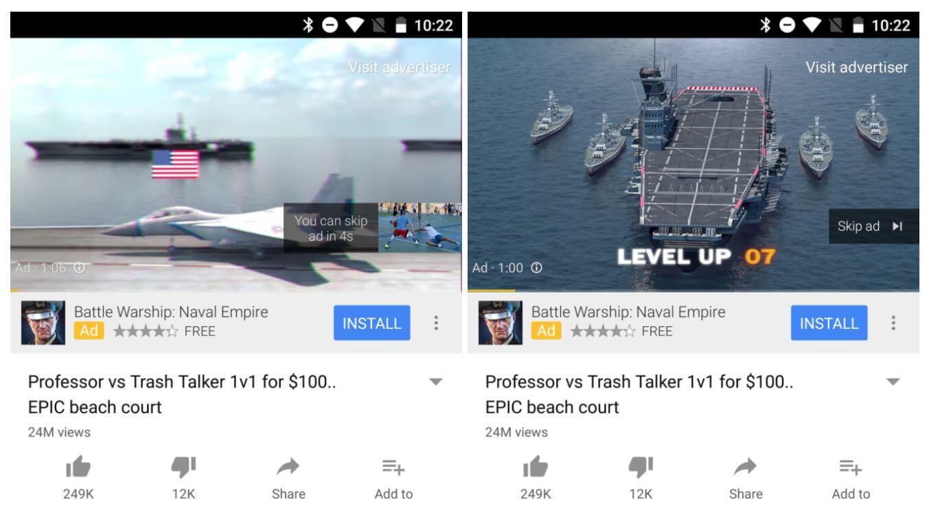 Die Werbung vor einem Video kann in vielen Fällen nach 5 Sekunden mit einem Touch auf einen schwebenden Button übersprungen werden. Allerdings ist er auf dem Smartphone nicht so leicht zu treffen und kann auch in einen Touch auf das Video resultieren. Um dies zu verhindern gibt es in Zukunft auch eine Swipe-Geste, mit der die Werbung einfach mit einem Wisch von Rechts nach Links übersprungen werden kann.