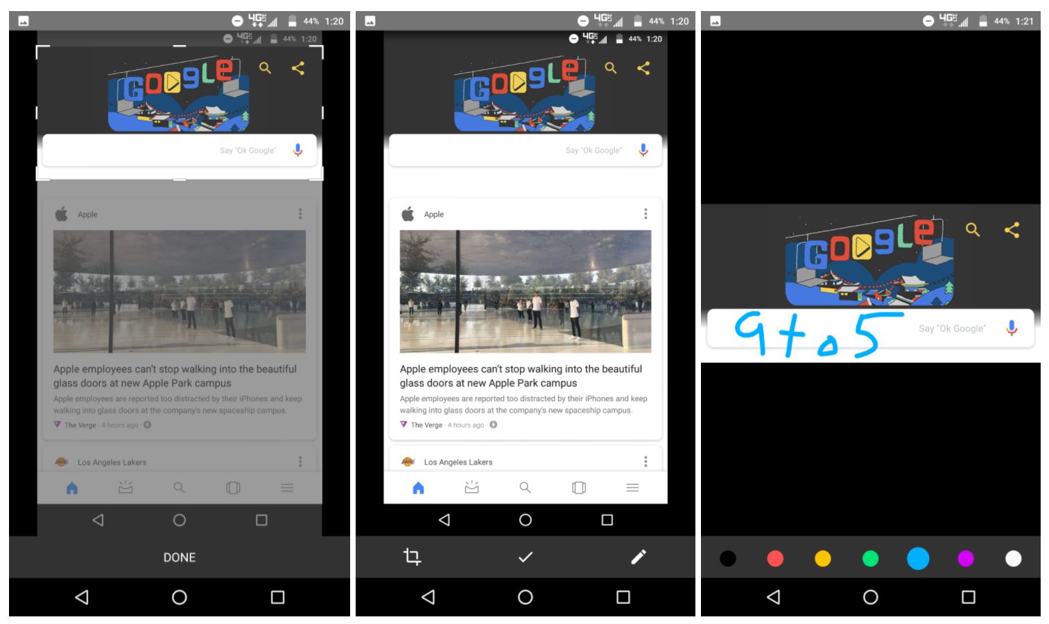 Interessant ist aber auch, dass es dieses Feature exakt mit dem gleichen Funktionsumfang im letzten Jahr schon einmal gegeben hat, und dann schon nach kurzer Zeit wieder zurückgezogen wurde. Auch damals war nur das Schneiden und Bekritzeln mit anschließendem Teilen möglich. Die Oberfläche hingegen wurde verändert. Aber auch das war nicht das erste mal, denn mit Now on Tap gab es schon seit langer Zeit eine Screenshot-Funktion und auch der Google Assistant kann per Sprache Bildschirmfotos anfertigen.