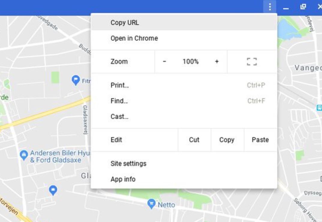 In diesem Menü finden sich die bekannten Einträge aus dem Chrome-Browser und erlauben die Nutzung der Standardfunktionen wie Zoomen, Suchen, Drucken oder auch das Öffnen der App direkt im vollwertigen Browser. Aktuell wird das Menü nur in der Canary-Version von Chrome OS angezeigt, dürfte aber früher oder später auch den Weg in die stabile Version und andere Betriebssysteme finden.